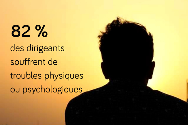 - 82 % des dirigeants souffrent de troubles physiques ou psychologiques*