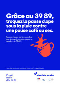 “Grâce au 39 89, troquez la pause clope sous la pluie contre une pause café au sec”.